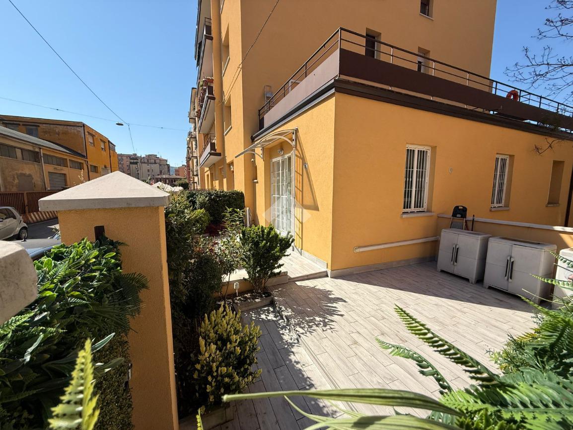 OSPEDALE MAGGIORE via monterumici proponiamo in vendita appartamento con ingresso indipendente e area cortiliva di proprietà, i 90 metri quadri si suddividono in 60 mq di zona abitabile e 30 mq di area cortiliva privata. L'immobile si compone di ingresso, soggiorno con angolo cottura, 2 camere da letto, doppi servizi. Dotato di riscaldamento centralizzato con contacalorie e aria condizionata. L'appartamento presenta ottime finiture di pregio che rendono questa soluzione abitativa è ideale per chi desidera vivere in una zona ben servita, senza rinunciare alla tranquillità e alla comodità di un appartamento rinnovato con cura.